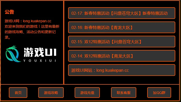 【龙ol】【启动器网页】[序号4]暗红色-logo-按钮底部-更新记录