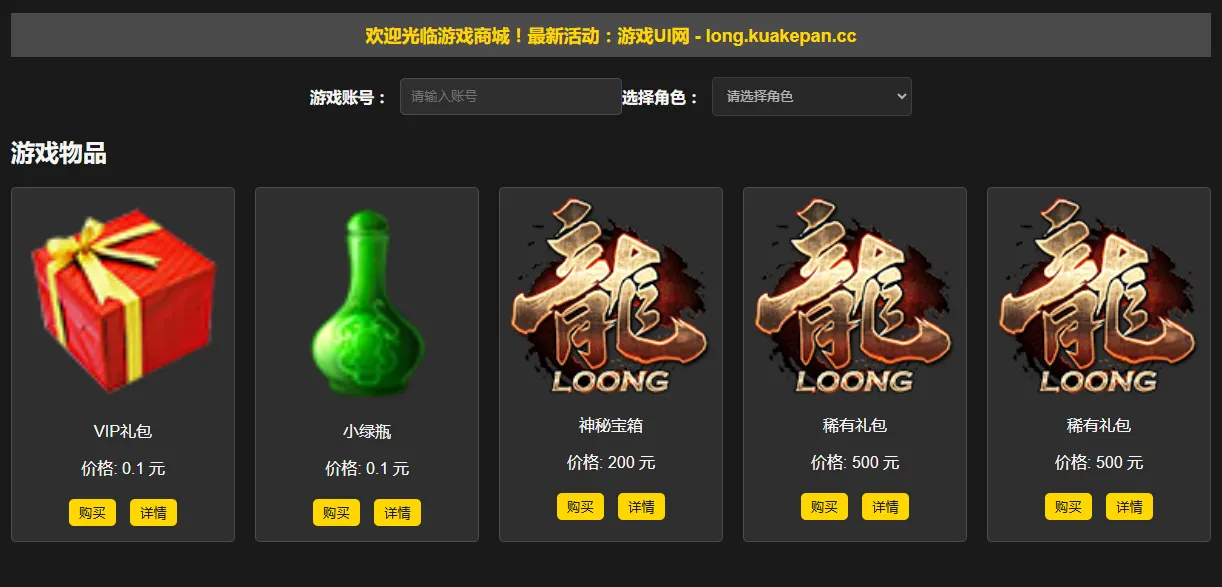 【龙ol】【网站源码】物品自助购买商城系统